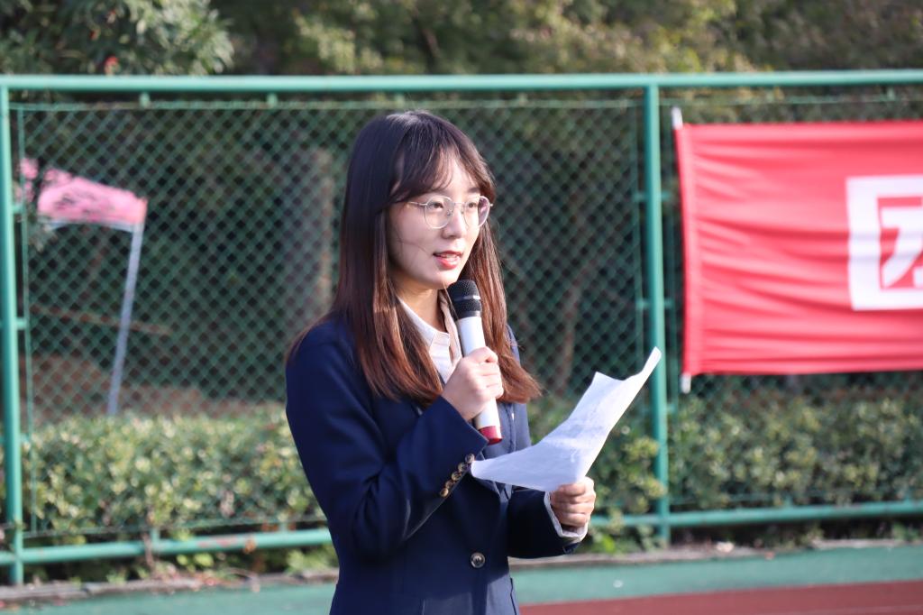 其后,19级商务英语2班的王炜佳同学作为学生代表发表国旗下讲话。围绕浙外的谆谆校训与个人成长经历,她讲述了青春故事与志向感悟。王炜佳同学分享到,“明德弘毅,博雅通达”这八字校训,是她在浙外上的第一课:“博雅”教导她要热爱祖国,“弘毅”引导她要胸怀大志,“博雅”督促她要勤于学习,“通达”鼓励她要躬身实践。2020年,全球局势发生巨变,新时代在召唤着青年,大学生应时刻展示出自己的崇高理想与社会担当,用美好的青春践行浙外精神,以65周年为起点,在新的征程中,与浙外同发展、共奋进。