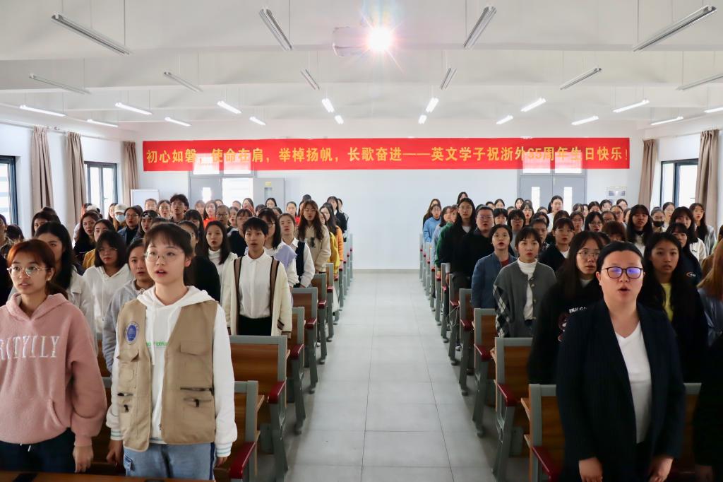 英文永利娱城app师生代表齐聚一堂,为学校庆祝大会点赞,为浙外生日送祝福。