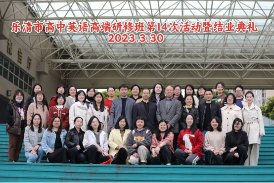 2023年3月30日下午,由我英语语方文化学院承办的乐清高中英语高端名师班结业仪式在乐清中学举行。英语语言文化学院党总支书记毛立峰,项目负责赵伐教授、周彩英教授,乐清市教育研究培训院副院长黄文华以及研修班全体学员教师出席仪式。