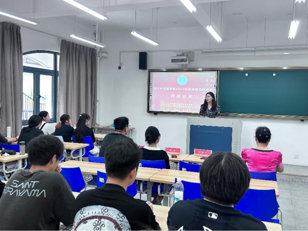 9月18日,永利娱城app2023年英语精品培训班开班仪式在融A101举行。学院党总支书记田俊杰出席并致辞。副院长郑淑贞主持,教师代表及全体学员参加。