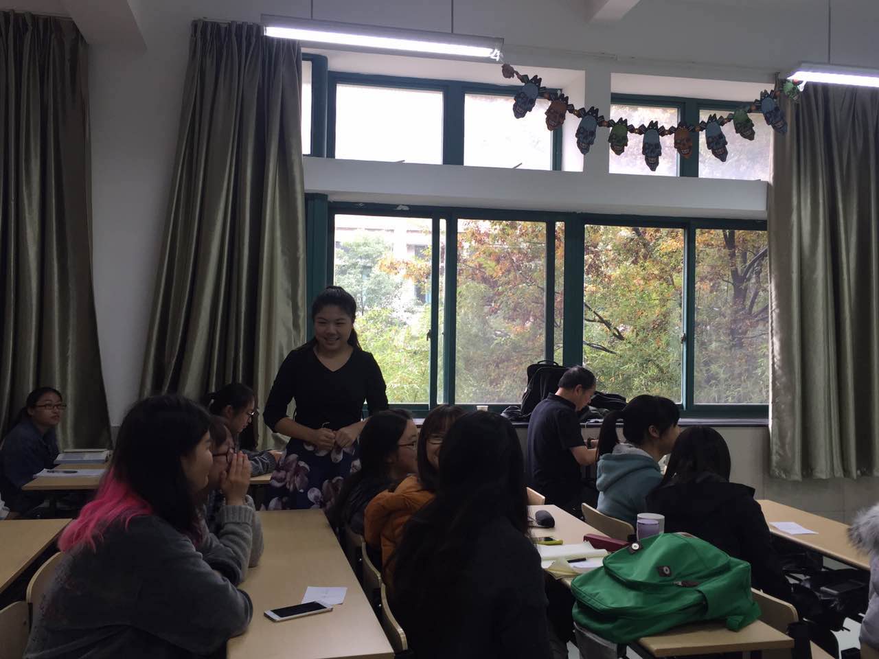 两位选手在拿到随机抽到的题目后,当堂完成教案及PPT设计。在演示过程中,她们都采用了以英文歌曲导入课程的形式,展示了自信、流利的以及标准的发音和“师生”积极的进行互动。刘教授和高老师对两位同学的表现作出了细致的评价并给出了中肯的建议。刘教授充分肯定了两位同学的进步,选手们语言流畅、神采飞扬,加之与学生之间的密切互动,使本次课堂展示顺利的进行,此外还特别强调了着装及姿态问题,板书位置问题。作为一名老师,自身的形象关系到学生的表现,她分析了从教育学的角度去看待如何对待学生,从教育者的角度如何对待这个问题。刘教授坚信,接下来一周不断的练习,对教学内容加以相应的调整,必定能在省级师范技能比赛中取得优异的成绩。以严厉又幽默著称的高歌老师指出,两位同学的讲演还不尽如人意,在PPT设计上的细节问题必须加以改正,设计必须以学生至上的原则,文本布局和格式应大方,整体利用率应该高。