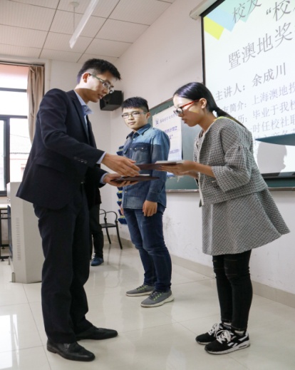 正如他所说:创业是一种情怀。余成川校友通过创业实现了自己的梦想,学习又何尝不是一种情怀。希望英文学子通过学习成就更好的自己,通过实践助力自己的梦想,通过感恩让自己成为内心真正富有的人。这是澳地奖学金设立的意义,也是英文学子应该拥有的品质。