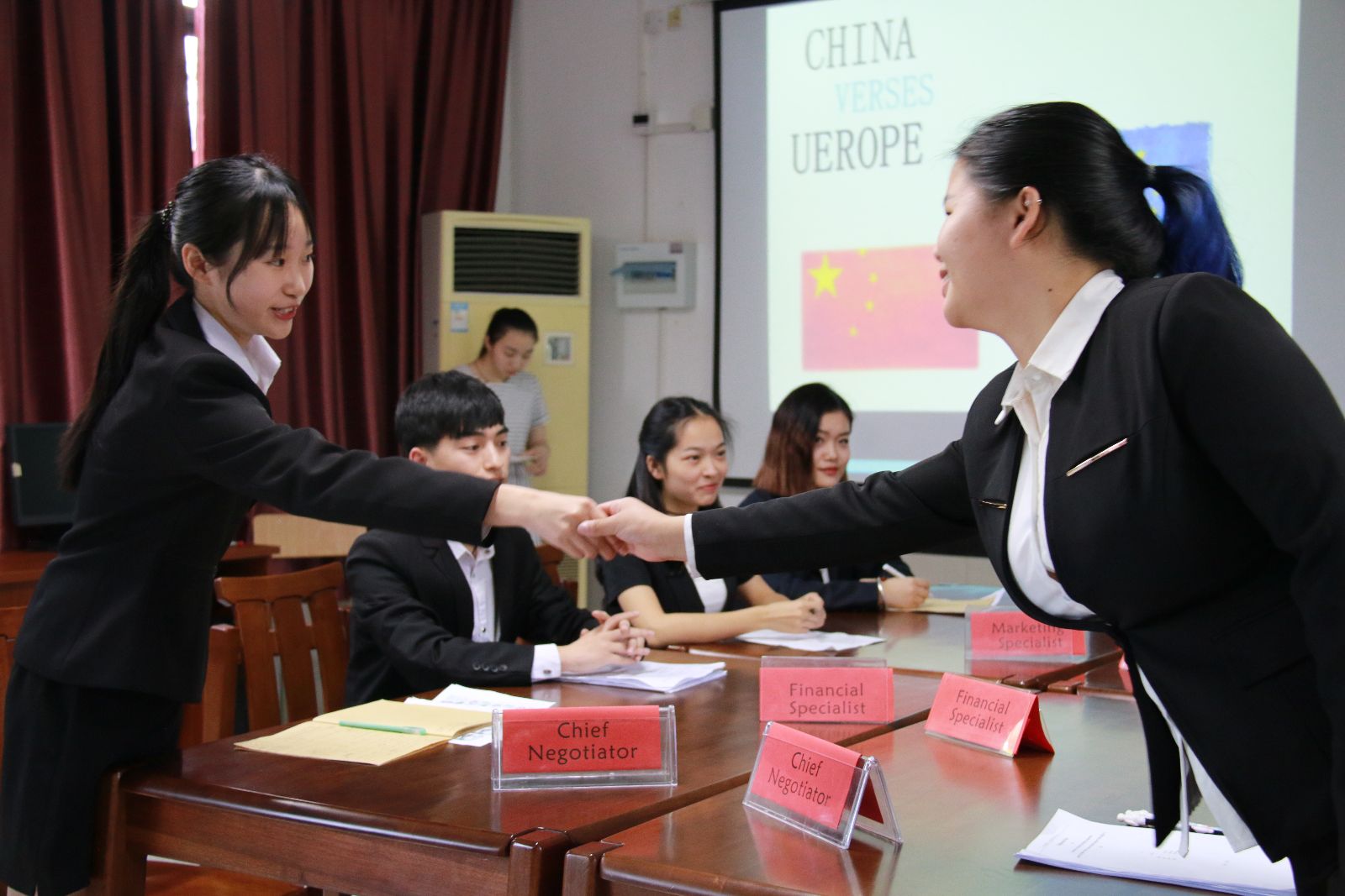 5月12日下午,英语语言文化学院第一届国际商务谈判大赛决赛在实验楼举行。永利娱城app李生禄老师、高伟老师及相关学生代表担任此次大赛的评委。