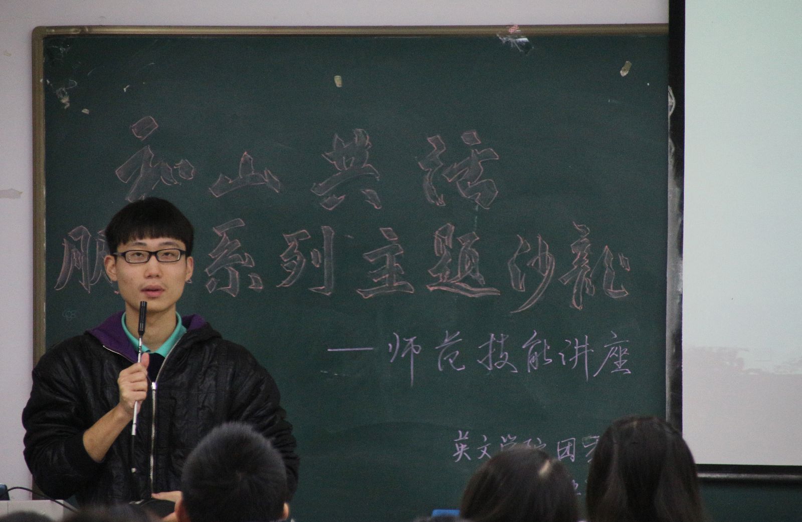 正如教育家加里宁所言:“教师的世界观、他的品行、生活,他对每一现象的态度都影响着学生。”师德对学生的影响也意义深远。为了更好地帮助学生提高师范技能,英语语言文化学院于12月18日晚举行“和山共话——朋辈系列主题沙龙之师范技能讲座”。英语师范专业优秀的高年级学生汪飞洋、纪思芸和张英与同学们分享他们的学习心得。