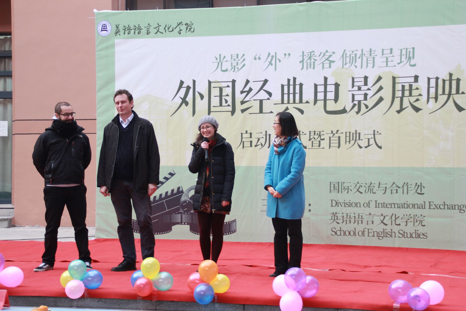 11月27日,由国际交流与合作处和英语语言文化学院联合主办的“光影‘外’播客——外国经典电影展映”启动仪式暨首映式在全校喜迎六十周年校庆的祥和气氛中隆重举行。校国际交流与合作处、小和山校区管委会办公室、英语语言文化学院相关负责人,来自俄罗斯、意大利、摩尔多瓦的三位光影“外”播客以及百余位学生参加了启动仪式。
