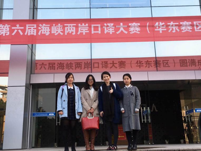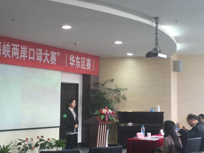 2015年11月14日,“海峡两岸口译大赛”华东赛区总决赛在宁波大学举行,英语语言文化学院杨琴、邵优然、周舒颖三名学生代表学校参赛。在与来自上海交通大学、复旦大学、浙江大学等高校的选手同台竞技中,我院学子表现优异,荣获华东赛区优胜奖。其中,来自14级口译实验班的周舒颖同学更是表现突出,在与诸多口译专业研究生的竞技中取得了第8名的好成绩。