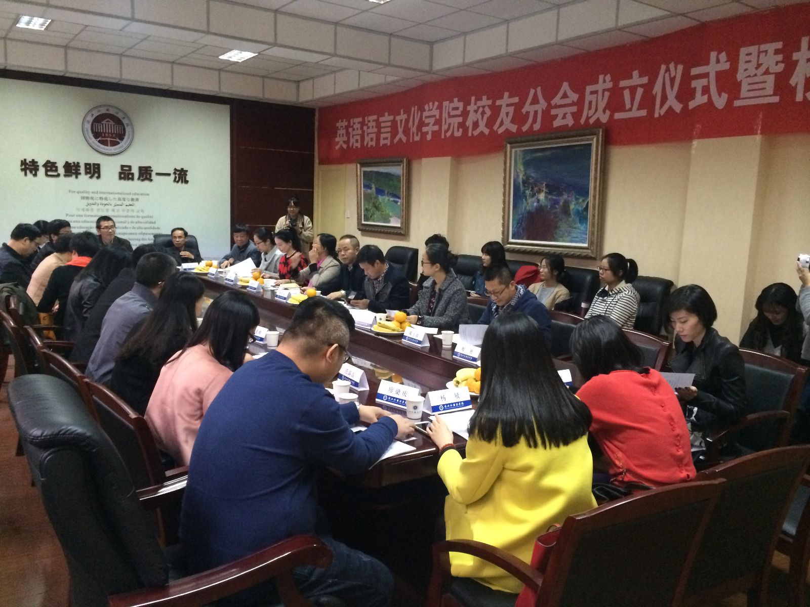 10月31日下午,英语语言文化学院校友分会成立仪式暨校友代表大会在文三路校区第一会议室举行。校党委副书记骆伯巍,原浙江教育学院党委副书记、纪委书记、校友工作特邀顾问胡浙平,以及党委、校长办公室,永利娱城app相关负责人出席了大会,与来自全省各地的20位永利娱城app优秀校友济济一堂,共同见证永利娱城app校友分会的成立。