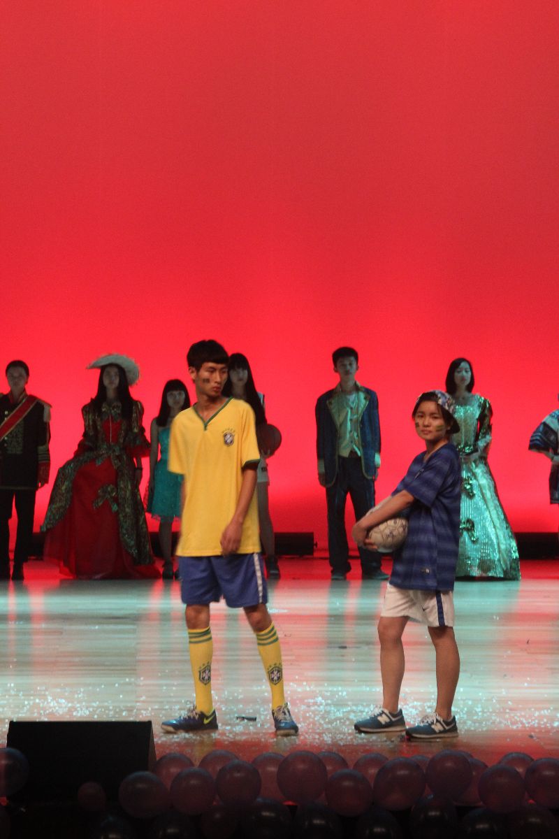 闭幕式上,学生们带来了极具英语特色的节目——英文诗歌朗诵、英语舞台剧、英语脱口秀,展现了学生扎实的英语口语能力;民乐重奏、太极表演,展现了中国传统文化的魅力;魔术、异域风情T台秀、英文金曲演唱,象征着五彩斑斓的青春。