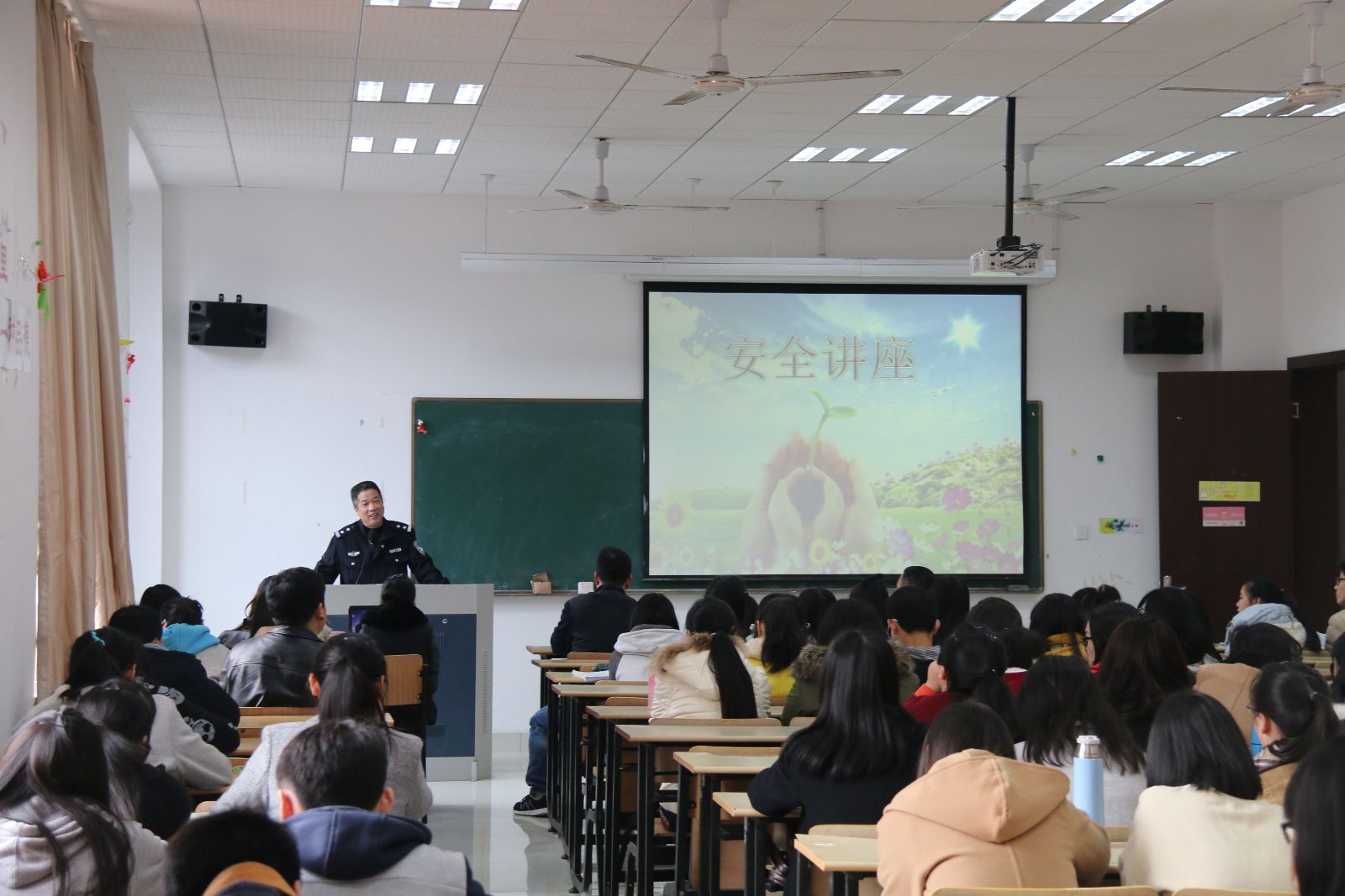 为提高在校学生的安全防范意识和自我保护能力,共创平安校园,英语语言文化学院特邀留下派出所民警杨警官为学生做了一场精彩的安全教育讲座。校保卫处、永利娱城app相关负责人出席了本次讲座。