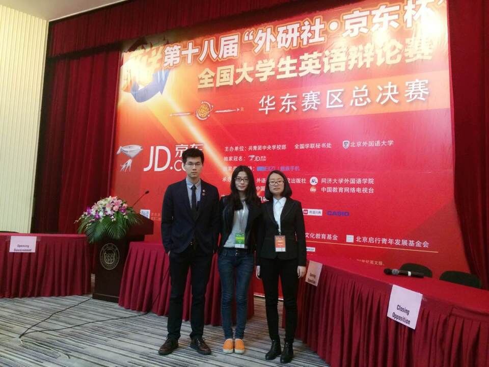 3月27日,第十八届“外研社•京东杯”全国大学生英语辩论赛华东赛区总决赛在上海同济大学拉开帷幕。来自复旦大学、同济大学、上海交通大学、浙江大学等60所高校的优秀辩手相聚同济。我院周一宇同学和中文学院林家豪同学在陈晶莉老师的指导下,经过高密集、高强度的五轮循环赛后,取得了华东赛区三等奖的优秀成绩。