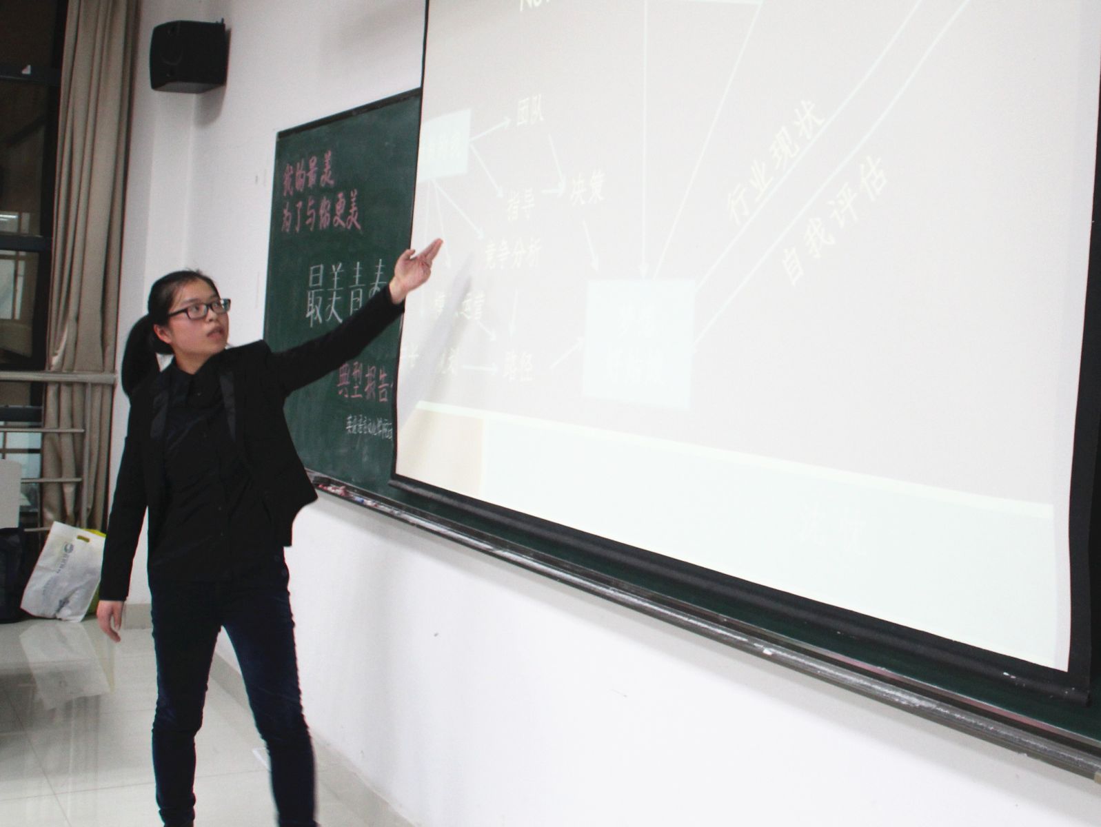 省“挑战杯”大学生创业计划竞赛二等奖、省大学生职业规划大赛二等奖得主“最美创业者”沈忱从创业和职业规划角度出发,分享了自己的创业经历,引领同学们一起参与了一场“关于思考未来、追寻梦想”的头脑风暴。