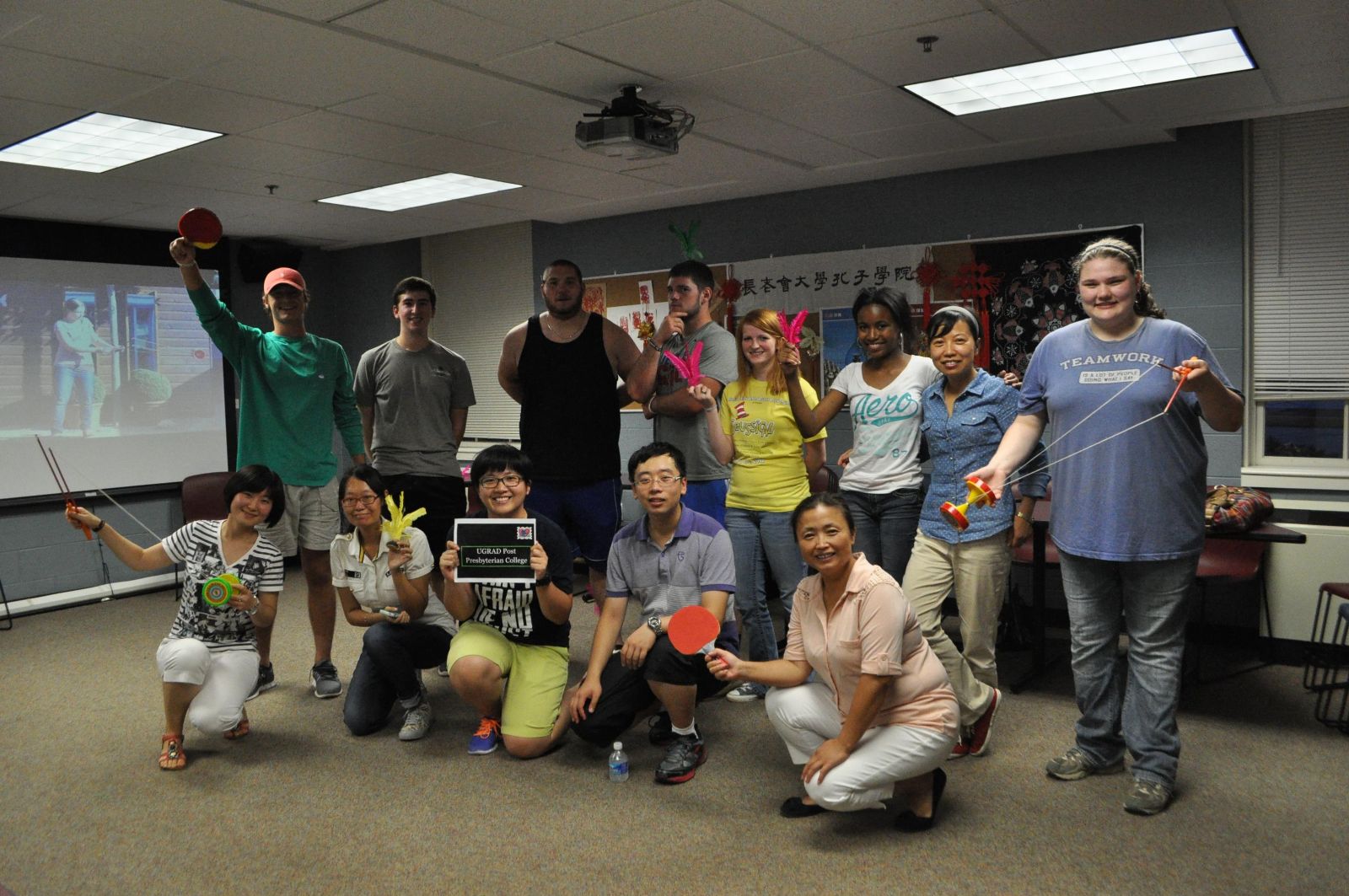 (钟佳与长老会学院的孔子学院的学生们共庆中秋节。)