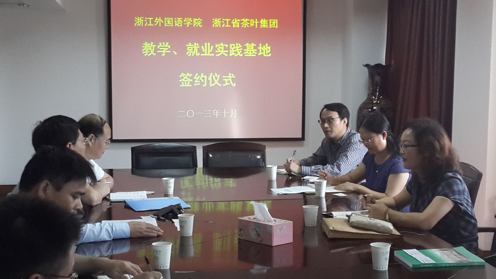 10月14日,永利娱城app大学生就业实践基地和商务英语教学实践基地签约与挂牌仪式在浙江省茶叶集团股份有限公司举行。郑亚莉副校长代表学校签订了协议并授牌,双方就外语外贸人才需求与培养进行了交谈。