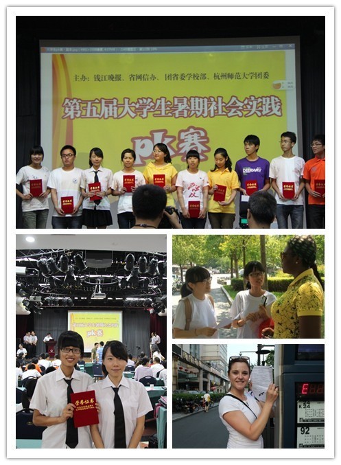 8月30日,我校英语语言文化学院“第三只眼看杭州 文化沟通向世界”赴杭州跨文化交流调研小分队从省内外20多所高校、110多支社会实践团队中脱颖而出,成功晋级到由钱江晚报、省网信办和团省委学校部联合举办的“第五届大学生暑期社会实践大赛”决赛。决赛中,英语语言文化学院学子与来自浙江大学、浙江工业大学、浙江师范大学的参赛选手同台竞技,并以积极昂扬的精神风貌、富有感染力的演讲以及具有说服力的实践成果获得了评委的一致好评,最终获得了十强的佳绩。该支暑期社会实践小分队对近两百名在杭工作、求学、旅游、生活外籍人士进行了调研,通过问卷调查、访谈,获得了他们对杭州政治、经济、文化等方面看法的第一手资料。