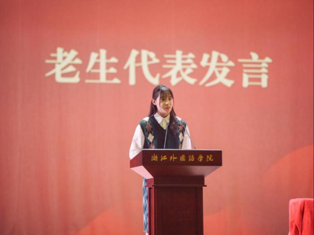老生代表2021级英语(师范)3班的胡思桐讲述了自己的亚运志愿服务经历,希望同学们把握机会、积极探索、收获多元知识、积蓄试错勇气,淬炼成为更好的自己。