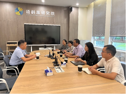 在上外语料库研究院,院长韩子满带领我院班子成员参观了数字人文实验室、智能化语言数据处理与应用实验室、智慧学习实验室等。在随后的座谈会上,他介绍了研究院的发展历史与人才队伍情况,并重点介绍了语言数据科学与应用交叉学科人才培养、多语种语料库教学科研智能化平台等方面取得的成绩,分享了相关的经验。我院介绍了新文科与人工智能背景下英语专业人才培养的新思考和新探索,希望在学科交叉融合发展、跨专业人才培养等方面加强沟通和交流。