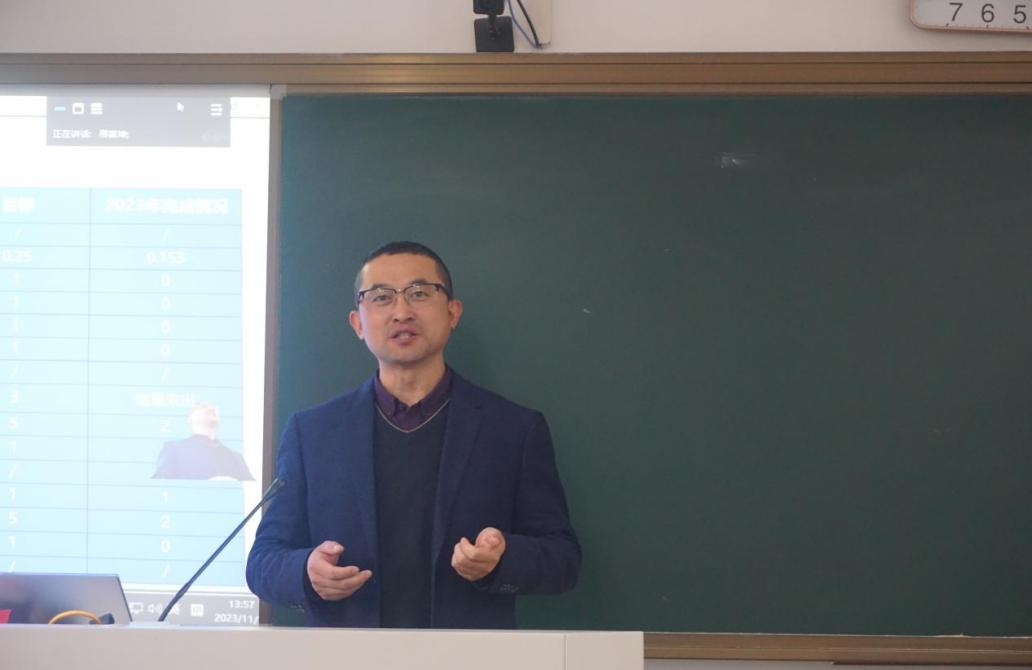 教学副院长陶伟针对近期公布的学院专业发展规划(讨论稿)等文件征求老师们的意见。他从日常教学、期中教学检查、教学材料规范等角度对学院教学工作进行部署,鼓励老师们积极参与教学创新大赛,并号召大家为学生参加创新创业类大赛提供更多的指导和帮助。最后,他围绕出卷、排课、毕业论文指导、考研指导等内容对期末工作进行了详细介绍与安排。