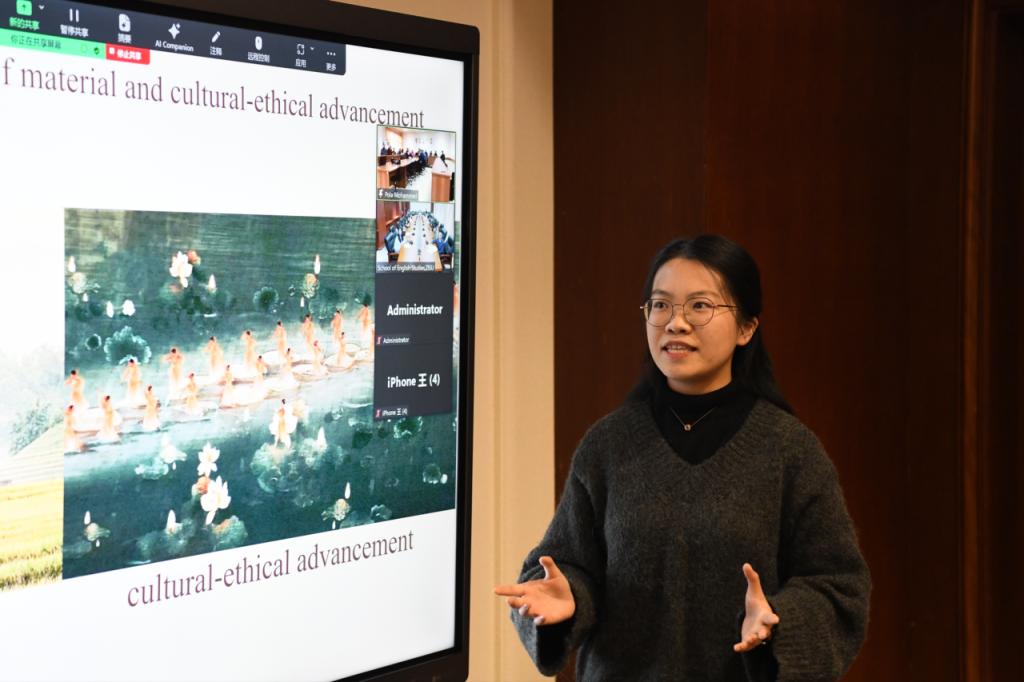伊拉克新汉大学翻译系学生Zhwan Adnan Ezzaldin进行了题为“搭建伊拉克与国际舞台的桥梁:从学术和专业角度探讨翻译”的演讲。他详细介绍了翻译在促进国际文化交流中发挥的重要作用。英语系学生Ahmad Abduljabbar Abdulrahim以“通过英语文学的影响提高学生交际能力”为题,论述了英语文学对培养跨文化意识和批判性思维的重要性,并呼吁大家在日常生活中加强文学知识的学习,从而不断提高自身的阅读理解能力和口语表达能力。