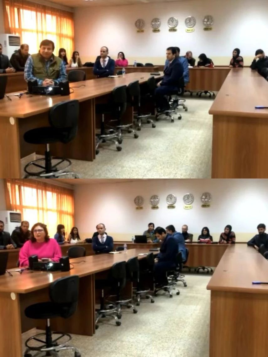 伊拉克新汉大学英语系主任Polla Tahsin和翻译系主任Sirwan Aminzadah介绍了新汉大学的院系设置、学科建设、专业发展、就业方向等内容,并着重介绍了学生专业知识技能的培养情况。他们真诚感谢此次活动提供的跨文化交流机会,表达了与我校学生深入交流的愿望,希望今后能和浙外有更多交流讨论的机会,进一步加深项目合作和专业研究。
