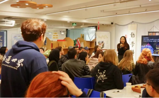 当主讲人站上台时,她热情四溢的话语立马点燃了活动现场的氛围。我们都将注意力集中在她身上,并且思维也随着她的发问一点点活跃起来。关于哈尔滨的演讲结束后,气氛也彻底热烈,我们也开始尝试着与留学生朋友们交流,逐渐寻找到共同话题。