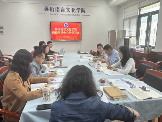 4月24日,英语语言文化学院党总支理论学习中心组召开专题学习会,深入学习领会学校第三次党代会精神。学习会由学院党总支书记田俊杰主持,学院理论学习中心组全体成员参加。