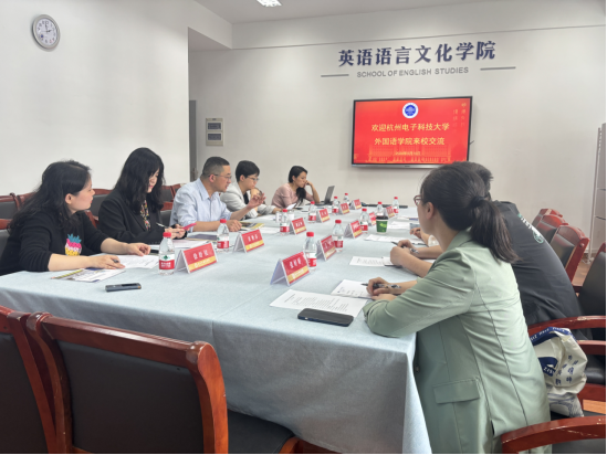 敬南菲对我院的办学实力和专业特色表示认可,介绍了杭电外国语学院的专业设置和人才培养情况,并探讨了开展外语一流本科课程建设和外语专业复合人才培养。