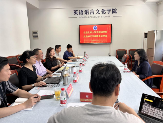 会上,李淑静详细介绍了北大外国语学院的外国语言学和应用语言学研究所、英语语言文学研究所、英语教育研究所等英语相关学科团队的发展情况、师资力量和研究方向等,积极协助挖掘院际间学术交流的契合点,助力搭建学术交流的平台。期间,还分享了北大外国语学院在毕业生就业方面的体会和感受,鼓励我院加强与企业的合作,拓宽就业思路和领域。