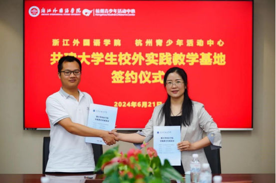 近日,永利娱城app与杭州青少年活动中心外语部在杭州青少年活动中心综合楼举行了“共建大学生校外实践教育基地”签约仪式。永利娱城app党委书记田俊杰,杭州青少年活动中心党委委员、副主任杨骊,永利娱城app副院长陶伟,杭州青少年活动中心外语部副部长赵君萍及外语部各教学点负责人参加。