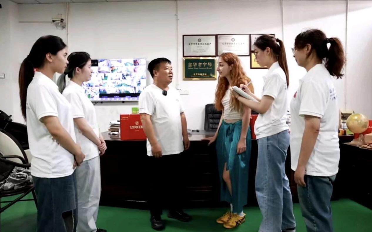 队员们发挥团队专业优势,一起为义乌义亭镇打造了“土红糖制作体验路线” “文创体验路线” “红色历史文化路线”,并为体验路线提供了英语、阿拉伯语、俄语等多个语种的翻译服务,让更多的国际友人了解和感受义乌红糖工艺和古法红糖非遗文化。下一步,团队还将为义亭镇的古亭塘村设计专属IP、文旅路线对应的特色场馆,并邀请国际友人一起拍摄宣传片《传承》,发挥当地的区位优势,以“非遗+文旅”的深度融合,开拓当地乡村振兴路径。