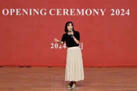 2024级英语(师范)专业新生曹妤颉同学作为新生代表发言。她分享了自己对英语的热爱与梦想,号召同学们在大学里脚踏实地、拼搏努力,做有理想、敢担当、能吃苦、肯奋斗的新时代好青年,在浙外永利娱城app开启新的篇章!