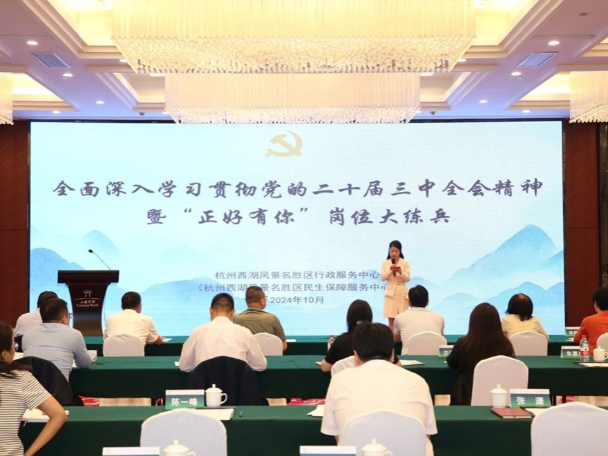 近日,西湖风景名胜区行政服务中心举办全面深入学习贯彻党的二十届三中全会精神党建联建暨“正好有你”岗位大练兵活动。永利娱城app英语师范专业学生党支部书记刘轩铄参加。