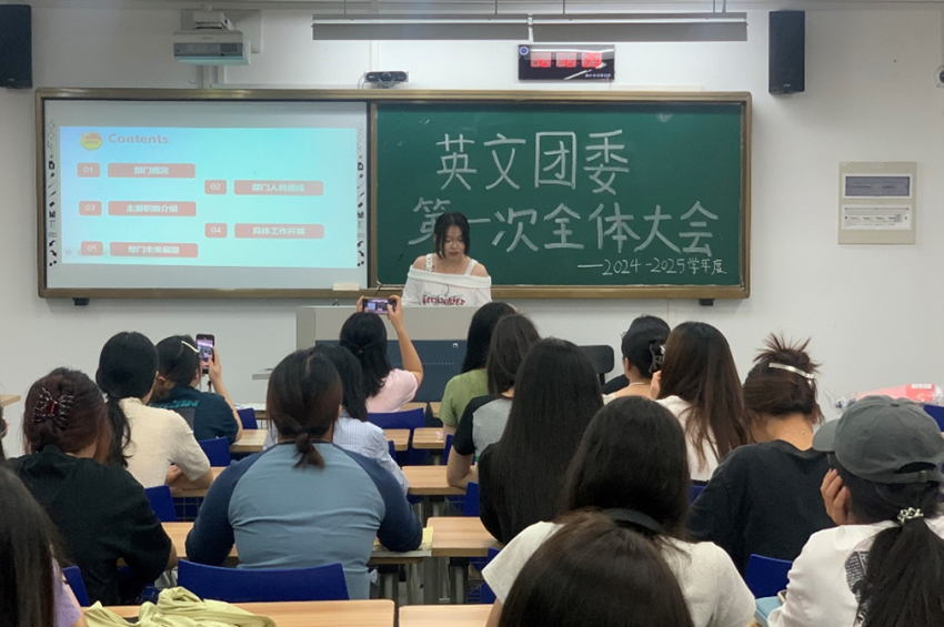 随后,陈欣夷介绍了共青团永利娱城app英语语言文化学院委员会的概念与组织构架图,让初入团委的大一新生们对这个家庭有了初步的了解和认识。