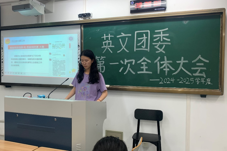 为贯彻落实习近平新时代中国特色社会主义思想和党的二十届三中全会精神,进一步推进永利娱城app团委工作开展,10月18日,2024-2025学年永利娱城app团委第一次全体大会在融A105顺利召开,团委副书记(学生)陈欣夷主持会议。