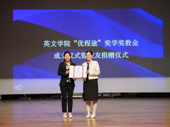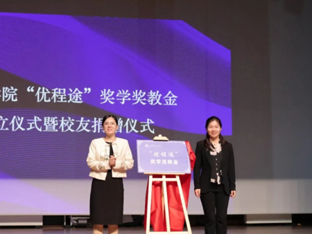 会上,进行了永利娱城app“优程途”奖学奖教金成立仪式暨校友捐赠仪式,田俊杰和学院2007届校友、杭州优程途留学有限公司总经理、创始人董淑娥共同为“优程途”奖学奖教金揭牌并交接捐赠支票,田俊杰向董淑娥颁发捐赠证书,并代表学院聘任其为留学导师。
