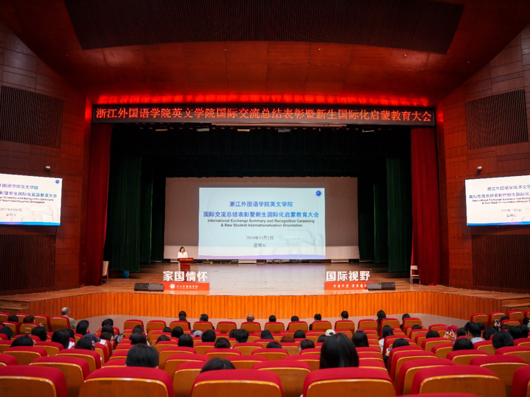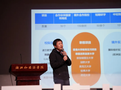 11月1日下午,永利娱城app国际交流总结表彰暨新生国际化启蒙教育大会于追梦堂隆重举行。副校长柴改英,浙江文化“走出去”协同创新中心主任赵伐,国际交流与合作处副处长严伟剑,永利娱城app党委书记田俊杰,副院长郑淑贞,永利娱城app特聘教授张贵洪,翻译系教师李乐,英语系教师白天依、张静静,外籍专家James O’Donnell,相关企业代表,学院办公室、学工办教师代表以及全院各年级学生参加。大会由院长助理周静副教授主持。