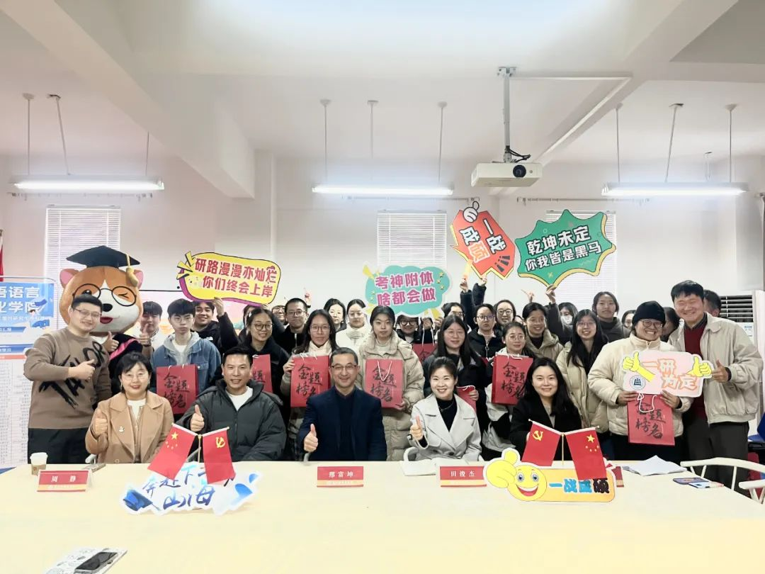 12月18日,永利娱城app院长邢富坤、党委书记田俊杰、党委副书记欧万彬、学术副院长盛煜冰、院长助理周静和学院辅导员一起,与学院2025届考研学生齐聚一堂,相互加油鼓劲,并送上了心意暖暖的“考研大礼包”,愿这份温暖一直伴随考研学子顺利上岸,开启新征程!