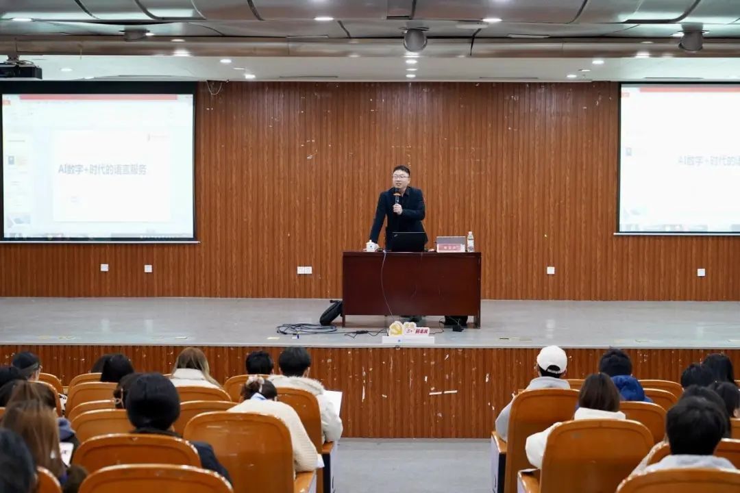 3月6日下午,译国译民集团有限公司联合创始人、全国MTI教育指导委员会与中国翻译协会认证的翻译专业研究生教育校外导师谢亮亮应邀为语言类专业学生作题为《AI数字+时代的语言服务:变革、机遇与职业突围》的讲座,探讨在生成式人工智能的快速发展下语言服务行业所受到的影响与行业未来发展前景,为语言专业的学生职业规划提供新思路。本次讲座是学院“献礼学校七十华诞”系列活动之一,由“‘E+’引路人”辅导员工作室承办,语言类专业300余名学生参加。