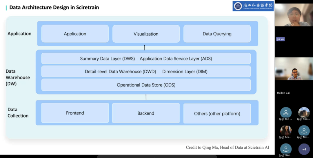 为深化学生对AI技术的理解,俞佳从数据架构设计、业务运营数据化到实际问题解决三个维度,全面阐述了人工智能在实际应用中的的数据实践。他将抽象的数据架构比作烹饪过程:菜品规划对应架构设计,采购食材相当于数据收集,烹饪加工类比数据处理,最终上菜品尝则是数据应用。这一生动比喻使数据科学专业的同学们对复杂概念有了直观理解。