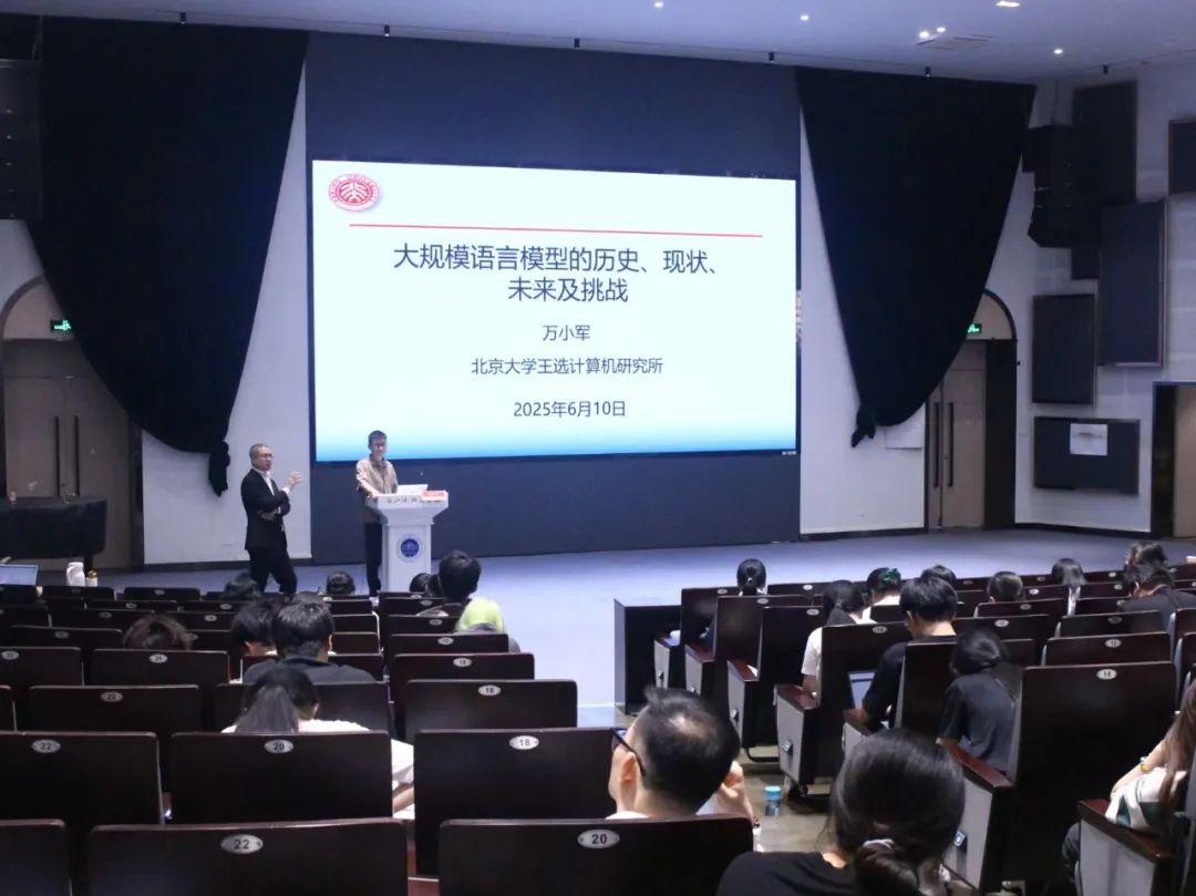 6月10日,一场关于人工智能大规模语言模型的讲座在永利娱城app内展开,本次讲座以“大规模语言模型的历史、现状、未来及挑战”为题,邀请北京大学王选计算机研究所语言计算与互联网挖掘研究负责人万小军教授从技术原理、发展历程、应用场景及未来挑战等多个维度,为在场大学生勾勒出AI技术进步的宏大图景。