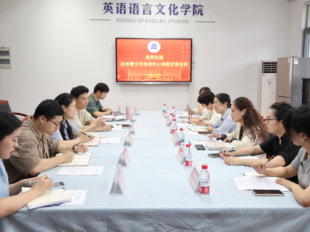 欧万彬结合与杭州青少年活动中心合作对接契机,介绍了学院在人才培养、学科竞赛方面的优势与特色,着重强调了学院就业工作重点的推进方向,并对2018届口译班校友陆昕祎表达了校友的关心。盛煜冰介绍了学院的暑假“小学期”的具体安排。杭州青少年活动中心外语部副部长赵君萍全面介绍了青少年活动中心的组织架构、用工情况、岗位类型、学段覆盖、培训安排及岗位需求倾向等。双方深入交流,达成多项共识,明确了小学期开展的具体实践项目内容,确认了对接联络机制,并清晰说明了面向我院学生开放的可选实习期数、详细岗位职责描述及录用面试标准,有力整合了校地资源,实现协同育人共赢。