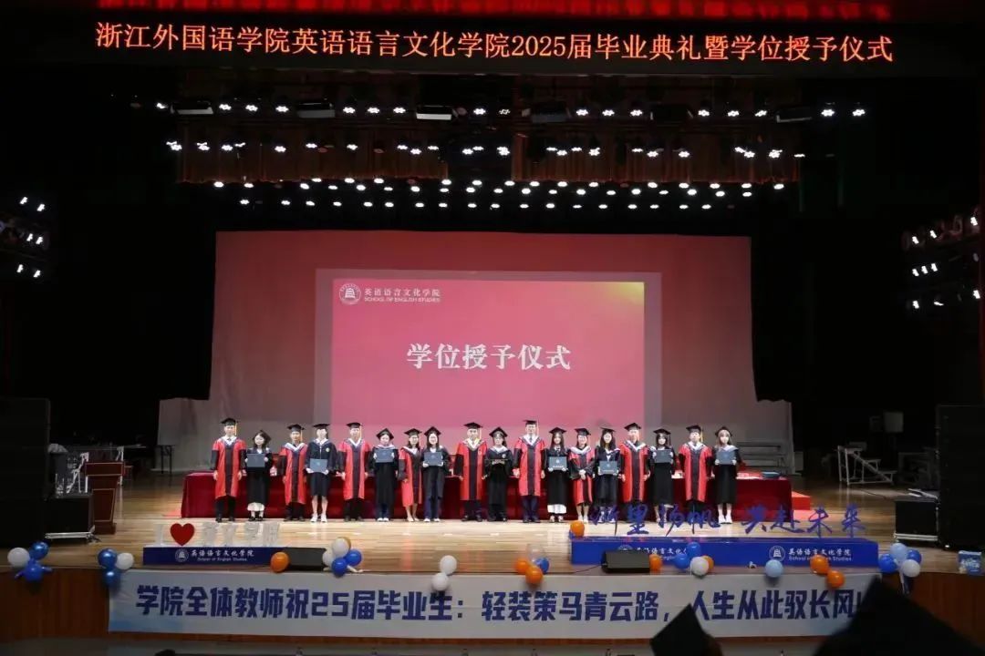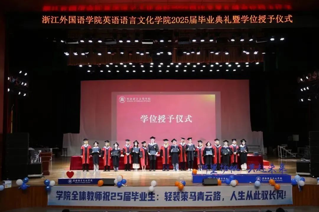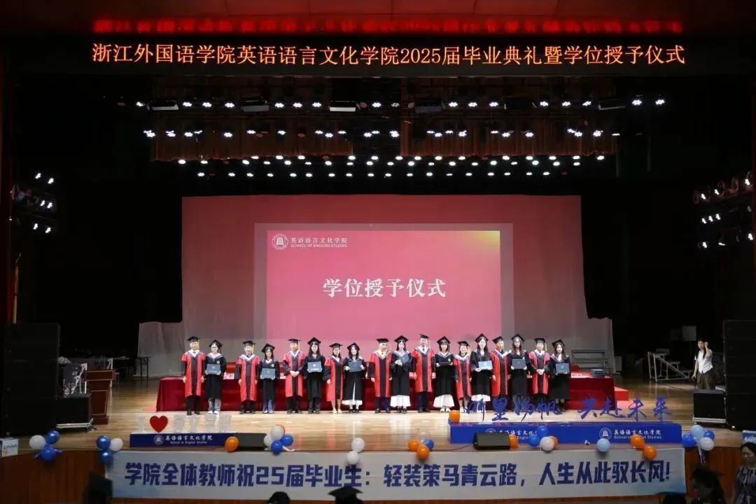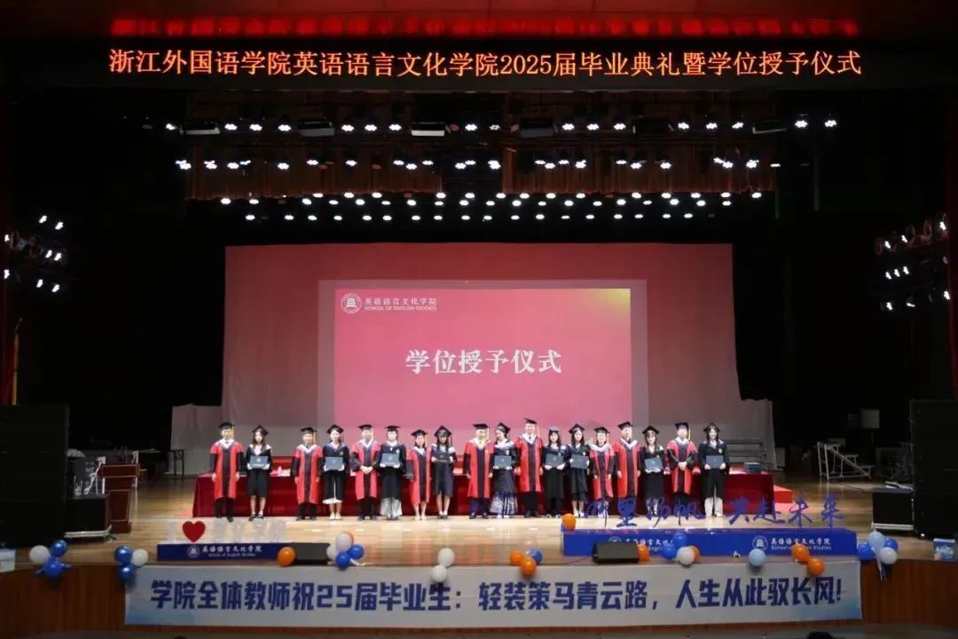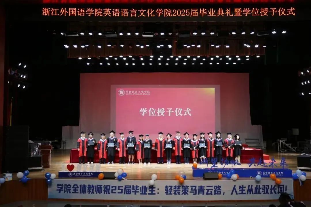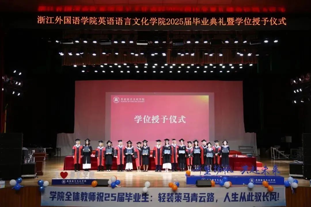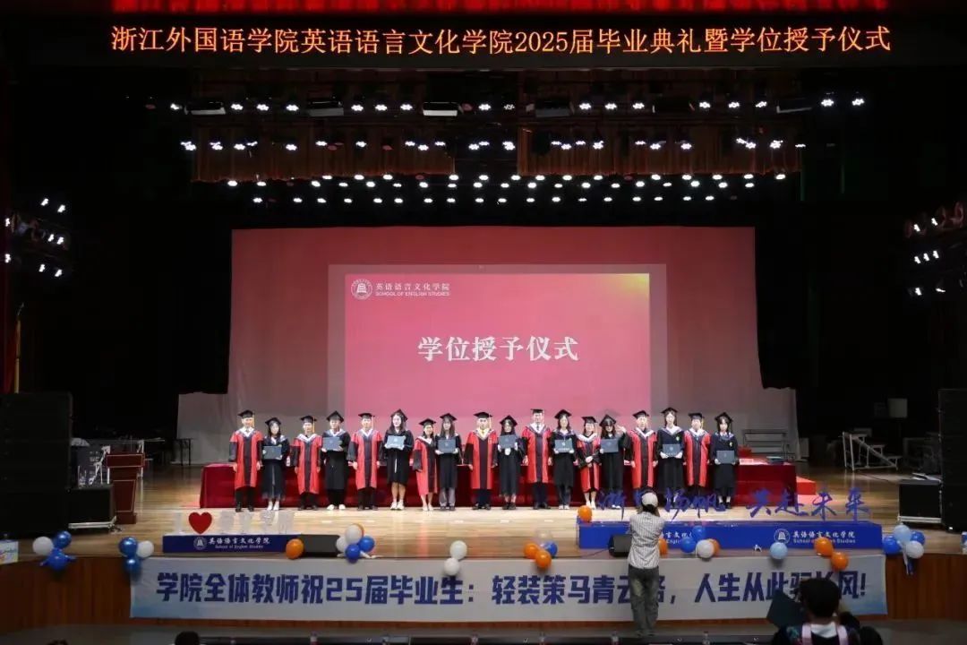 毕业生代表、2025届英语(师范)专业的胡馨宇带领大家一起回忆了在校期间诸多难忘而珍贵的瞬间,呼吁毕业生始终铭记校训院训,牢记浙外英文人的身份,不负韶华,继续前行。