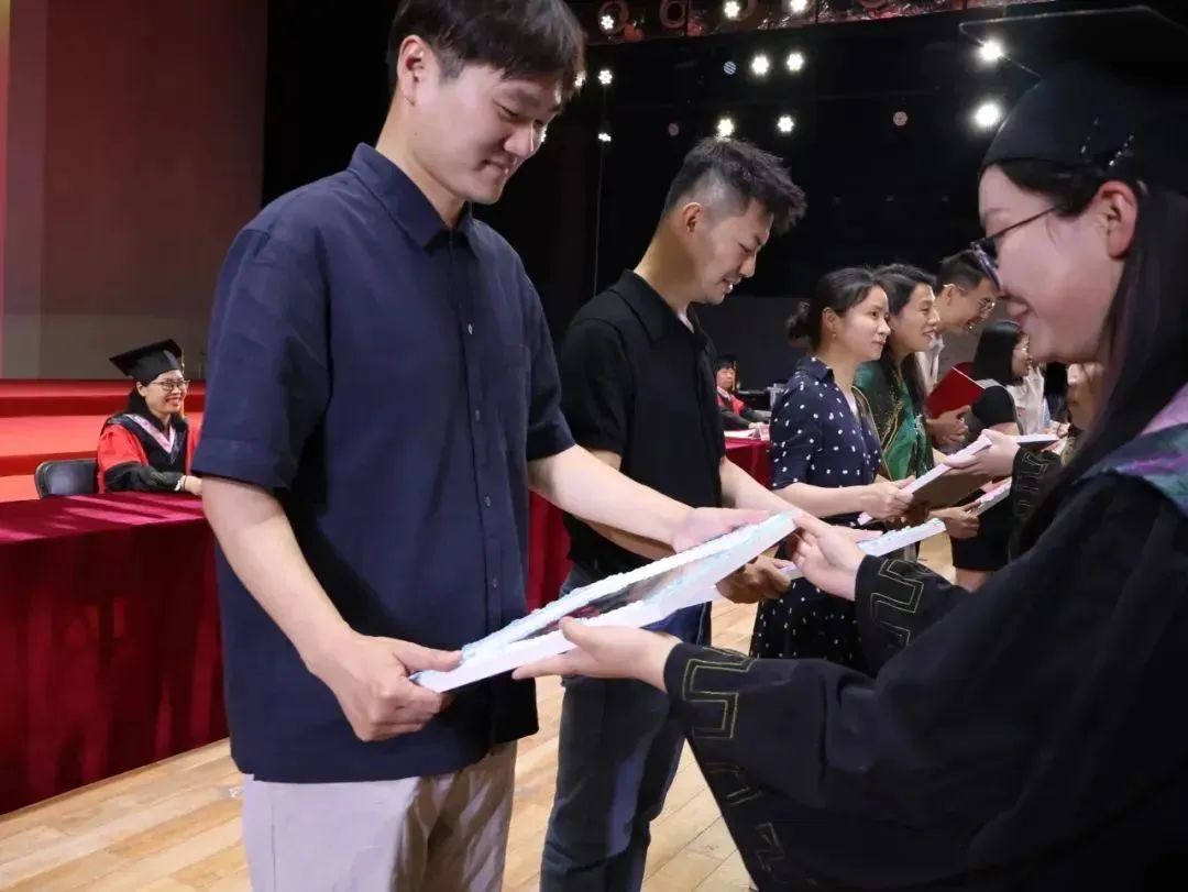 学术副院长盛煜冰宣读优秀毕业生名单,现场对优秀毕业生代表进行表彰。