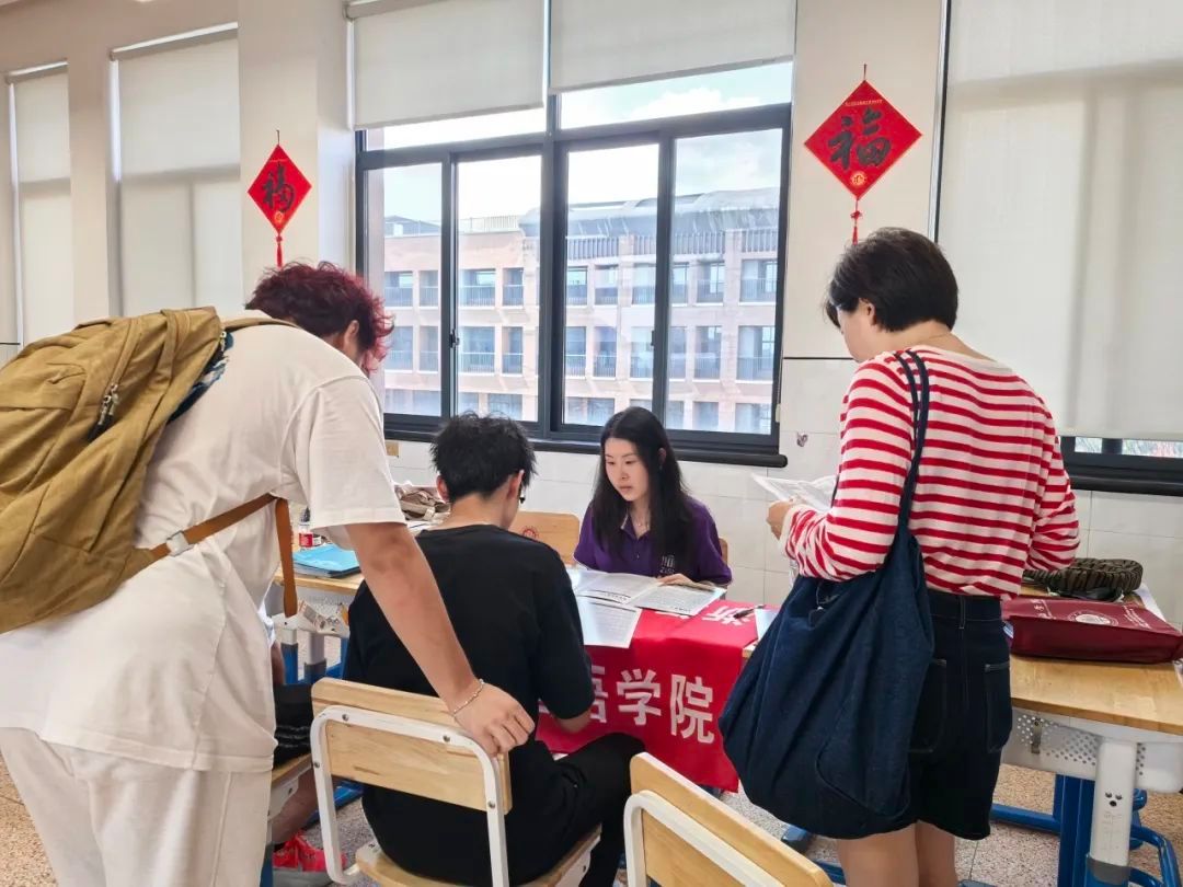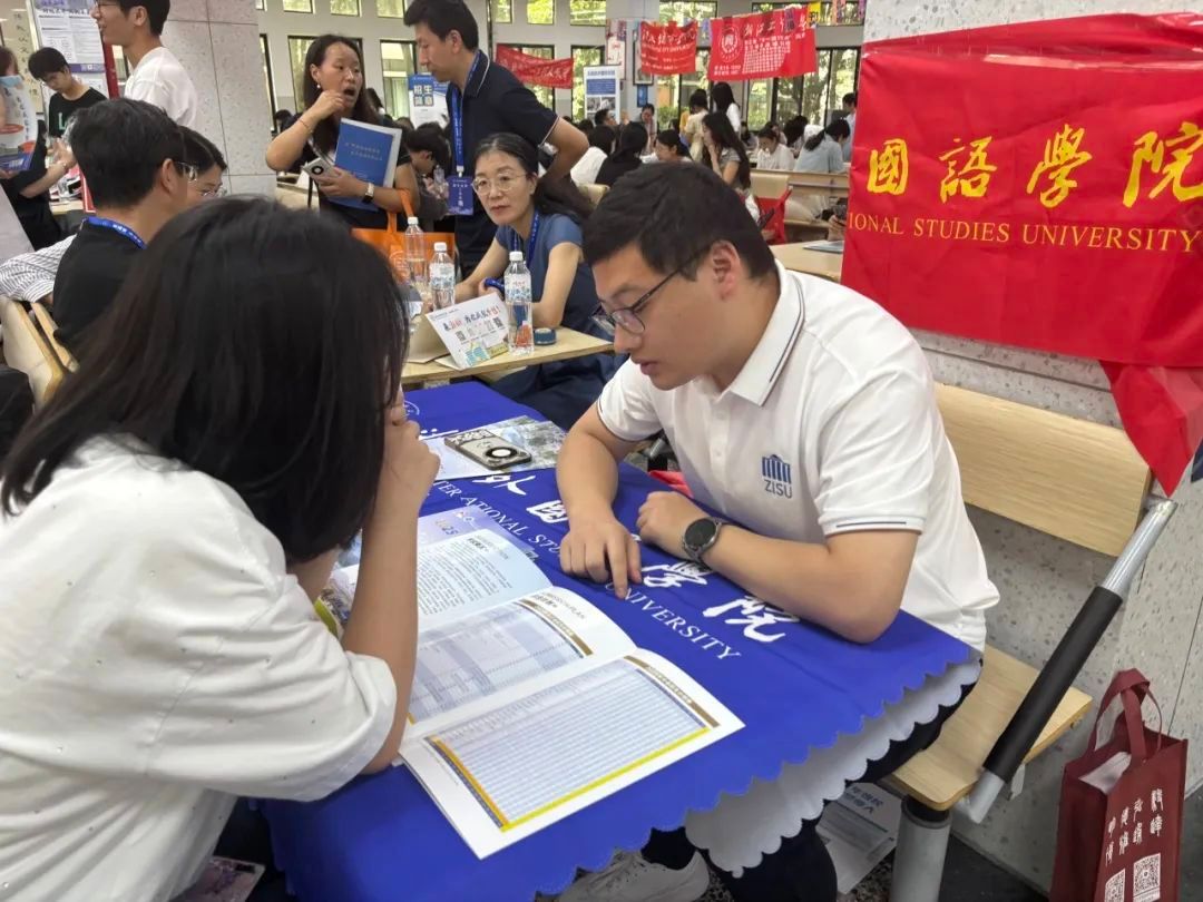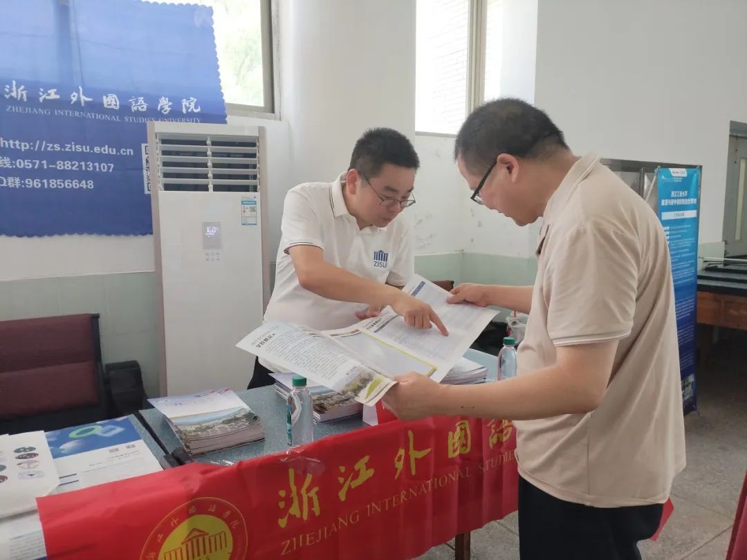 学校后勤服务中心副主任钱伟则以“双身份”投身桐庐两个咨询点的招生宣传工作——既是桐庐中学的校友,又是高校教育工作者,他的行动也得到了后勤服务中心的大力支持。