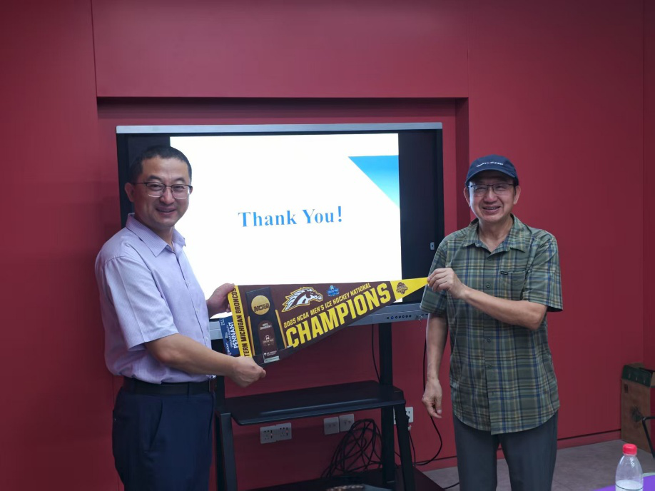 现场举行了赠旗仪式:王晓钧教授代表西密歇根大学,向永利娱城app赠予该校冰球赛事冠军纪念旗帜。这面承载着荣耀与温度的旗帜,寄托着中美文化交流的美好愿景,象征着跨越太平洋的情谊在文明对话中持续生长。