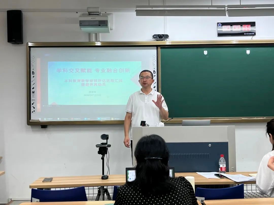 院长邢富坤着重强调了审核评估工作时间紧、任务重,全体教职工务必高度重视、全力做好迎评工作。他深入阐释了永利娱城app“学科交叉赋能、专业融合创新、‘E+’文化浸润”的三大人才培养特色。