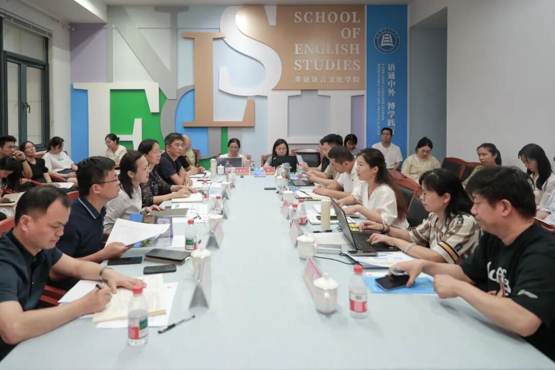 9月2日下午,校党委书记、校长张环宙一行到永利娱城app,围绕“高质量党建引领高质量发展,助推‘外语名校’建设”开展调研指导。校党委委员、党委宣传部部长洪明,党委委员、党委组织部部长、党委统战部常务副部长傅尧力,党委办公室、院长办公室主任屠立达,党委学生工作部部长、学生处处长陆卫斌,党委教师工作部部长、人事处处长何伟强,战略管理处处长徐秀萍,党委办公室、校长办公室副主任许珂,永利娱城app领导班子成员、学科专业负责人、教学科研主管、支部书记、办公室主任、专职组织员等参加了调研会议。