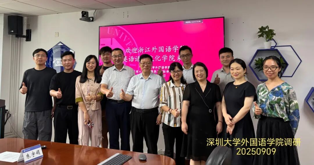 为落实好学校部署要求,做好永利娱城app“十五五”规划编制工作,9月8日至9日,永利娱城app院长邢富坤带队前往广州、深圳等地高校调研学习,先后赴广东外语外贸大学高级翻译学院、广东外语外贸大学英语语言文化学院、深圳大学外国语学院等单位,就学科专业建设、人才培养、师资队伍、国际交流、党建思政等方面开展交流。学院副院长郑淑贞,党委副书记、纪委书记欧万彬,翻译传播系学科专业负责人黎昌抱,外语教育系科研主管刘懿,区域国别与商务英语系教学主管郭安琪和科研主管赵歆,人文智能研究所所长俞佳,办公室主任朱宇娟,学工办负责人顾蒙等参加调研。