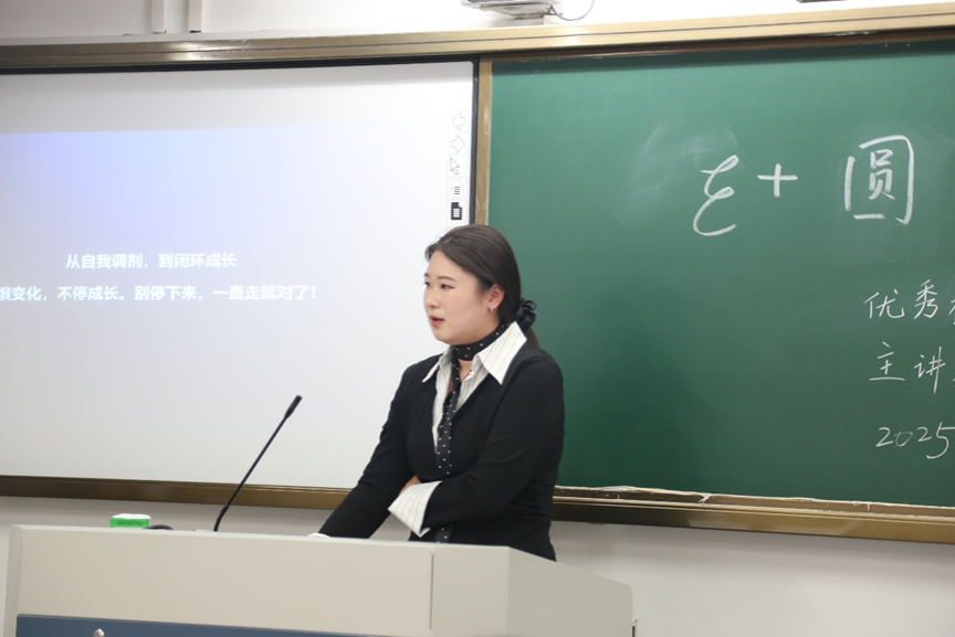 永利娱城app2023届校友、现某医疗器械公司大客户经理张濛婷以“从自我调剂到闭环成长:我的职业加速之路”为题,分享了她在考研失利后选择留学、并实现职场快速晋升的经历。她围绕“自我调剂”与“闭环思维”展开讲述,鼓励学弟学妹不畏变化,以高执行力把握成长机遇。