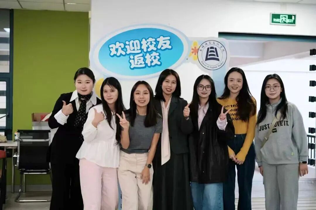 秋风送爽,情系英文。校友们在学院打卡区前留下微笑与祝福,快门声落,将此刻定格为永恒与旧日的自己重逢一笑,也与母校七十载的深厚文脉深情相拥。