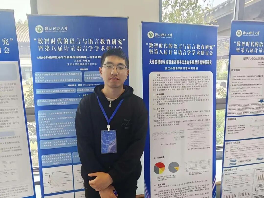 10月24日-10月26日,“数智时代的语言与语言教育研究”暨第八届计量语言学学术研讨会于在浙江师范大学(金华校区)召开。永利娱城app2022级英语专业本科生龚恩溢、许猛参加会议并做论文海报展示交流。
